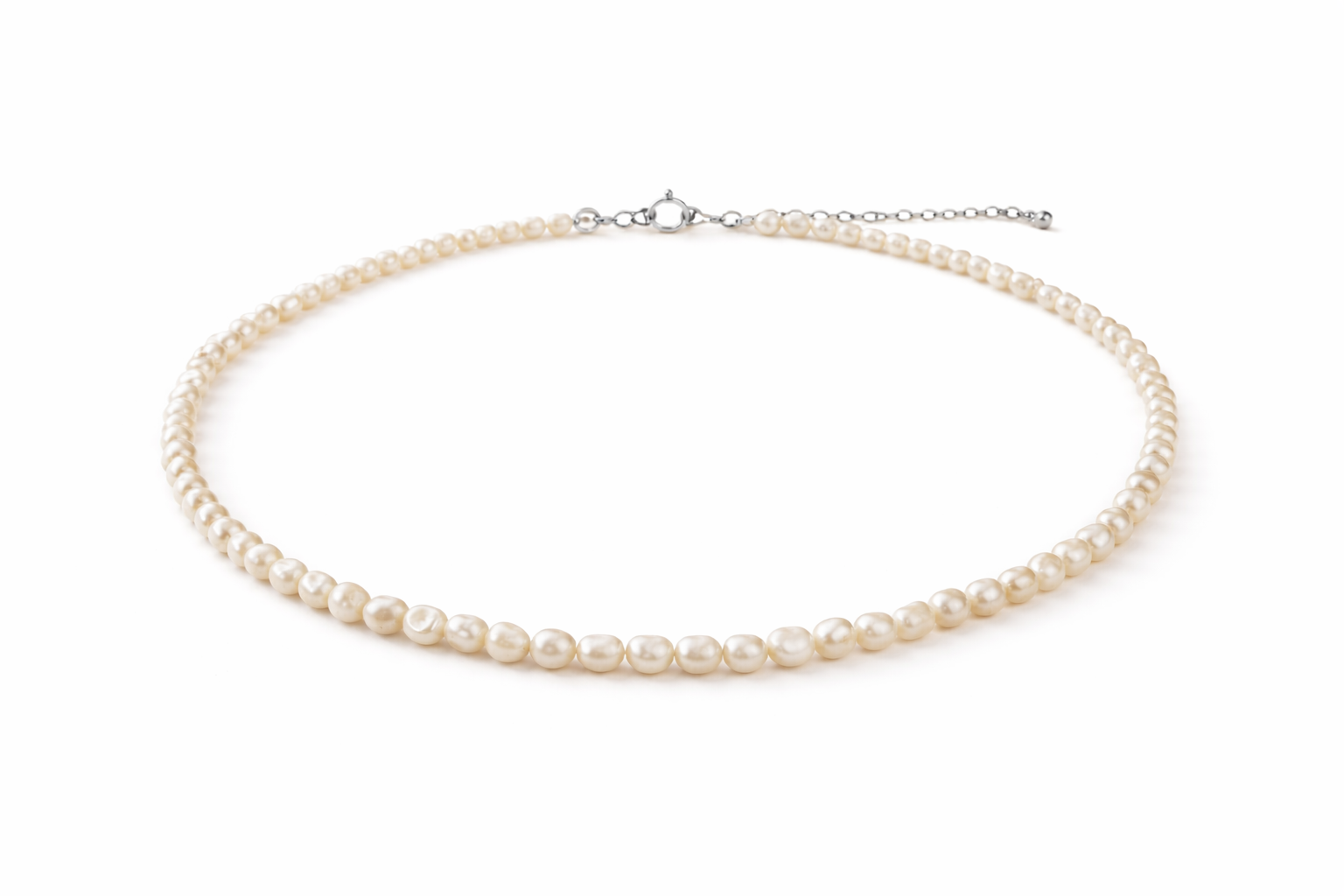 This handcrafted freshwater pearl necklace combines classic elegance with modern lightness. The genuine freshwater pearls (3–5mm) impress with their natural luster and their soft, timeless appeal.